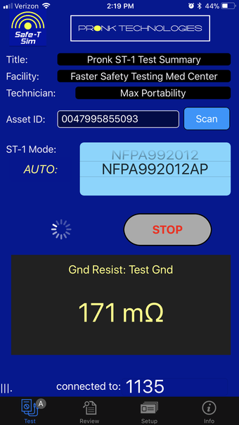 ผลการทดสอบแบบเรียลไทม์และการเก็บบันทึกโดยอัตโนมัติผ่านการเชื่อมต่อทางบลูทูธ เสริมความมีประสิทธิภาพ ผู้ใช้สามารถดูการวัดแบบเรียลไทม์บน iPhone หรือ iPad ของพวกเขาในขณะที่การทดสอบกำลังเรียกใช้งาน แอปนี้ทำให้กระบวนการสร้างรายงานง่ายขึ้นโดยการรวบรวมรายละเอียดสำคัญๆ เช่น Asset ID, สถานที่ และชื่อช่าง, รายละเอียด Safe-T Sim และเวลาลงบันทึกโดยอัตโนมัติ